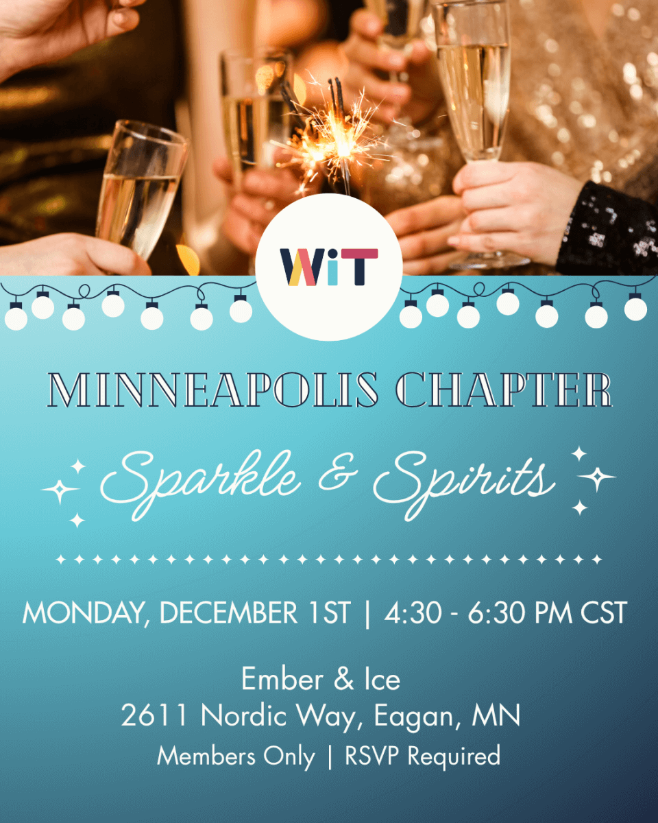 Join the WiT Minneapolis Chapter for a cozy evening of Sparkle & Spirits at Ember & Ice on Monday, December 1st from 4:30-6:30pm CST.