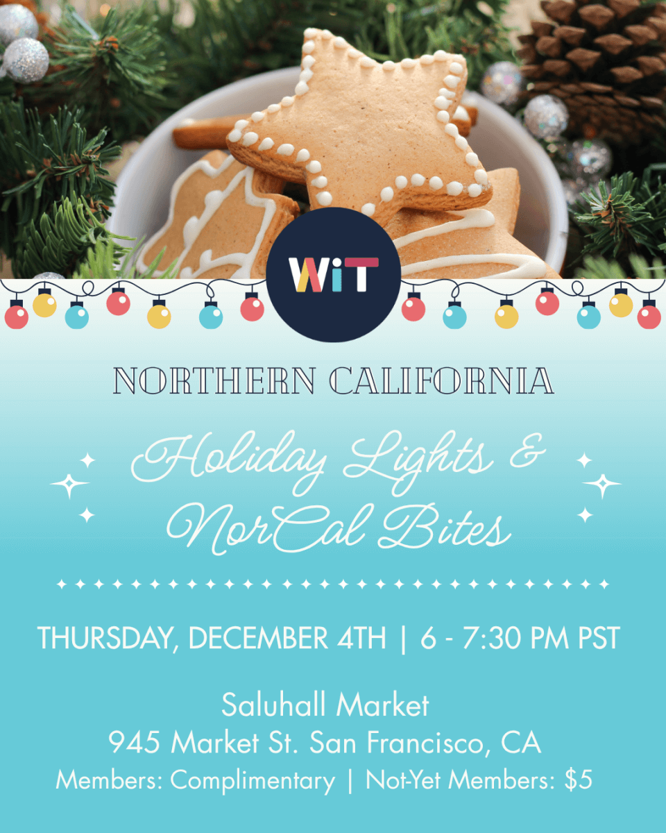 The WiT Northern California chapter is hosting a jolly holiday party on Thursday, December 4th at 6pm and you’re invited!